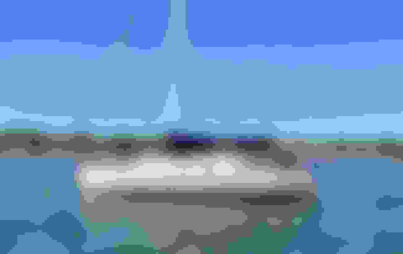 Hull & Deck Fiberglass hull & decks; 2-tone decks Removable bow anchor roller Removable transon dock box